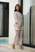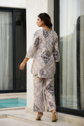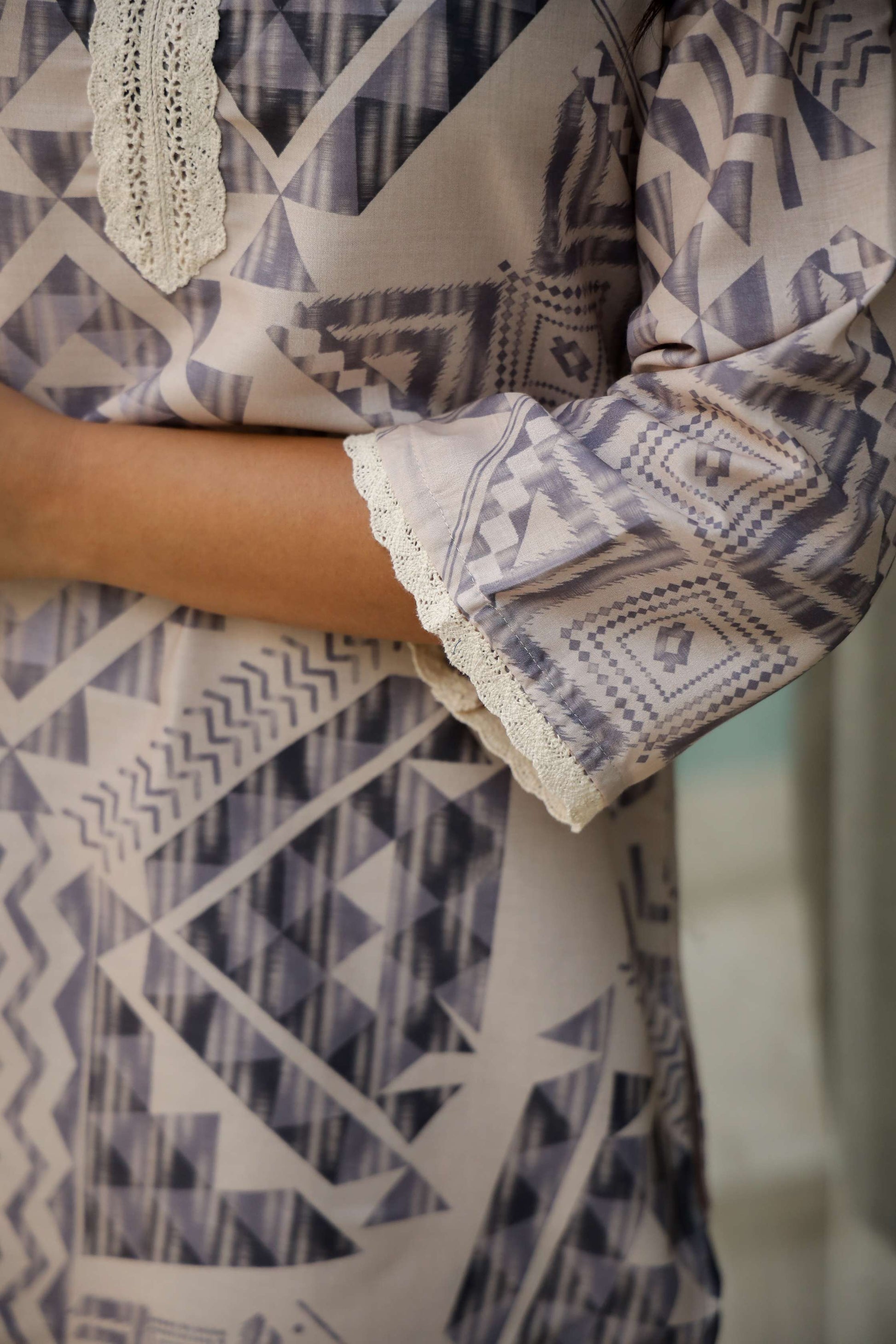 Bring effortless elegance to your wardrobe with this chic Beige & Grey Geometric Print Co-Ord Set. Designed with modern Indian women in mind, this two-piece set includes a relaxed-fit kurta-style top with a flattering round neckline and subtle lace detailing, paired with wide-leg palazzo pants for ultimate comfort and style.