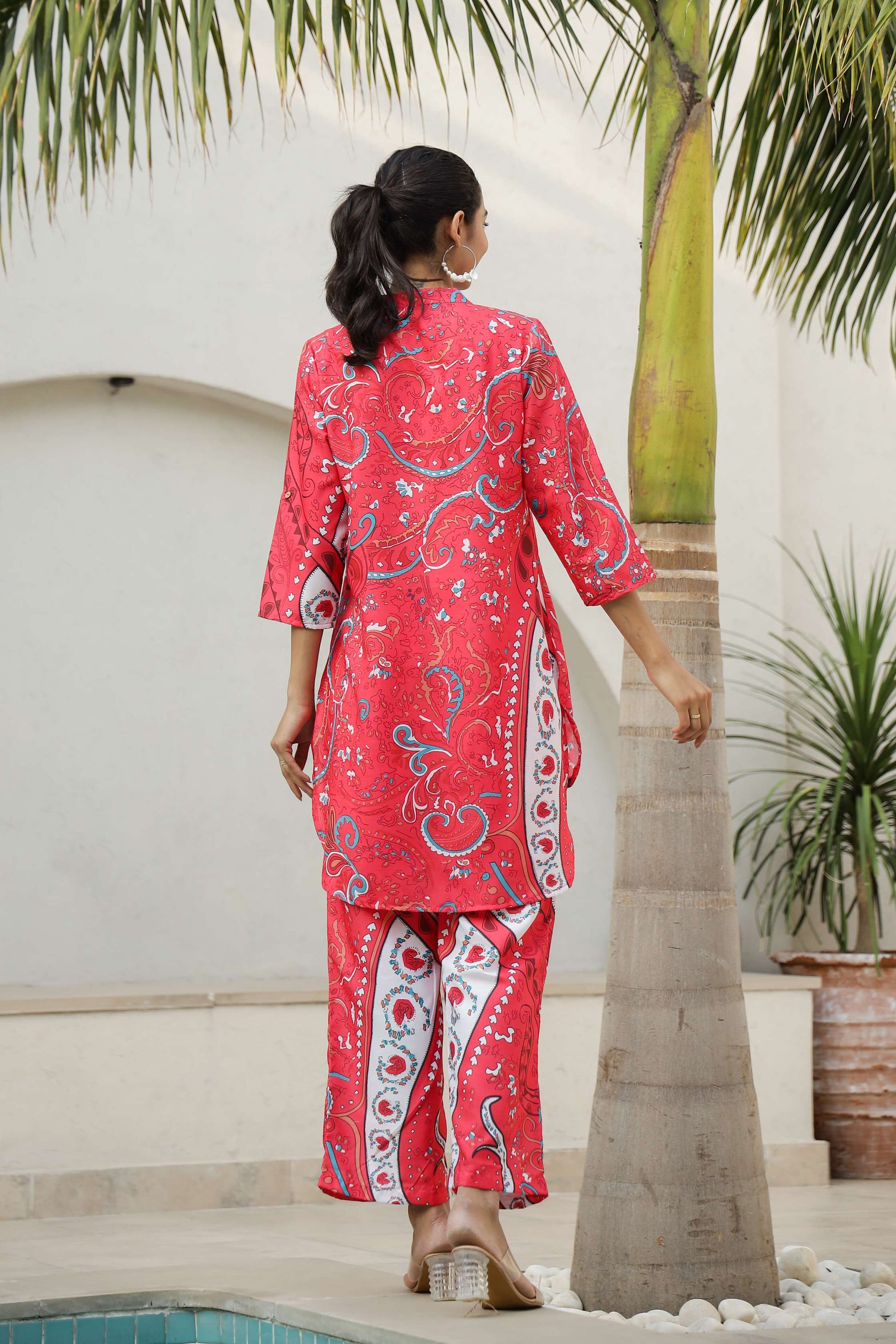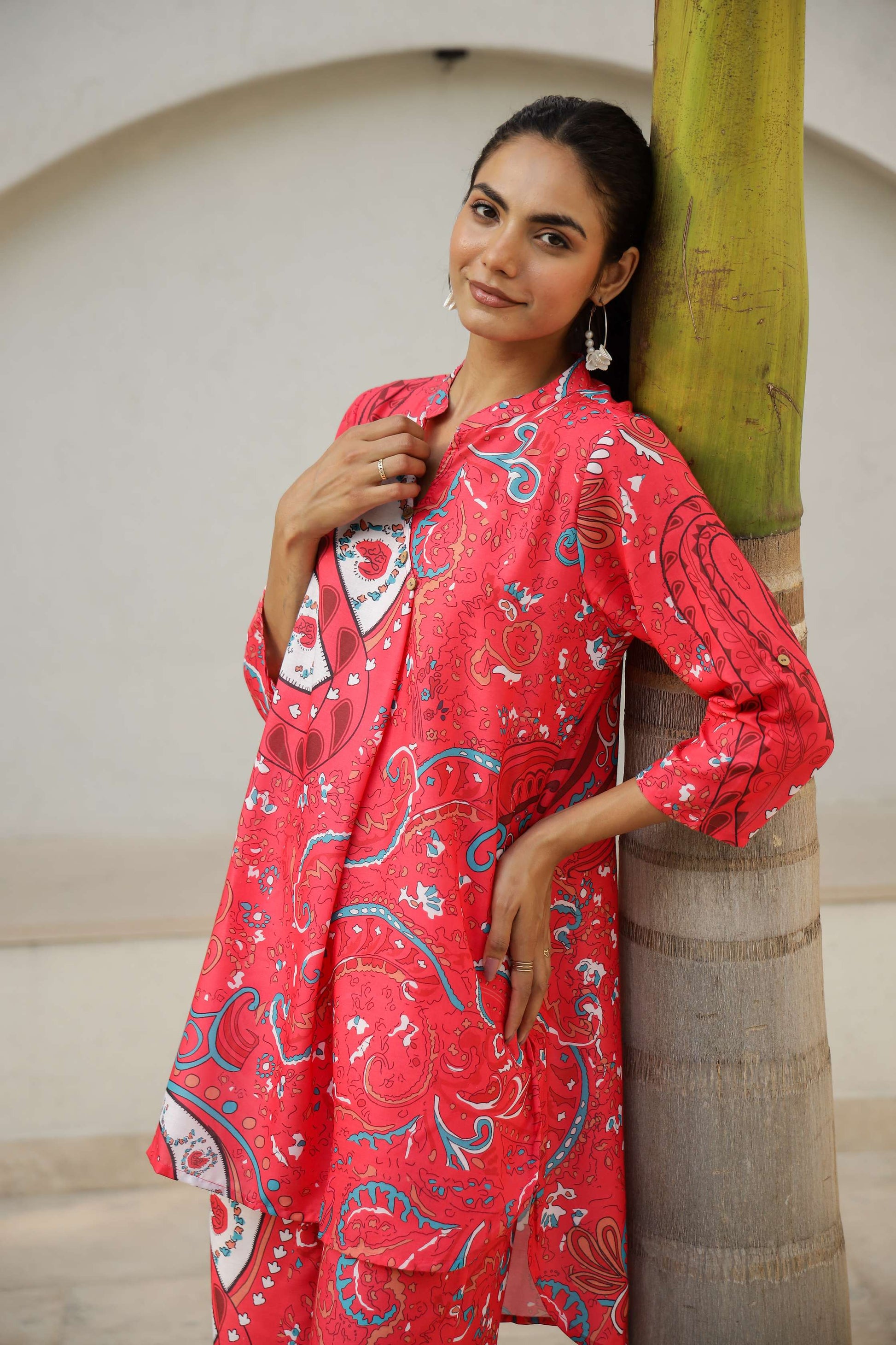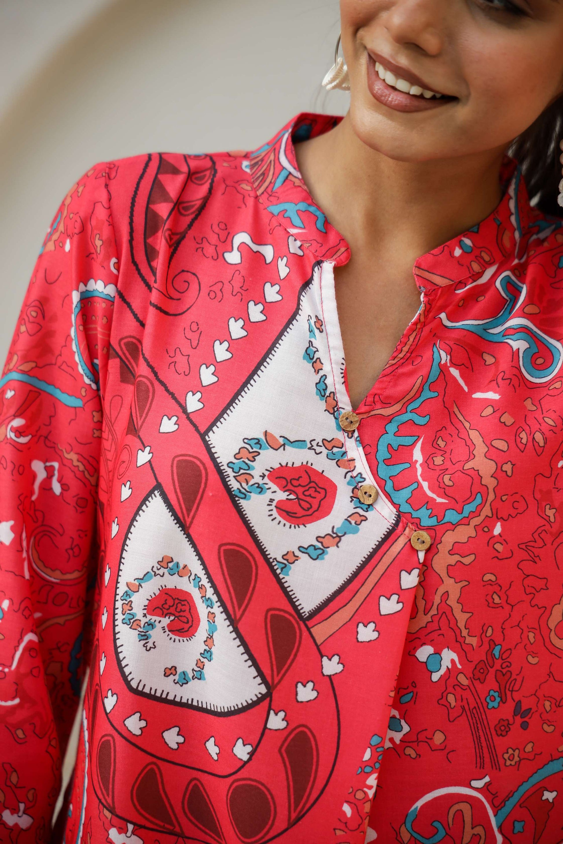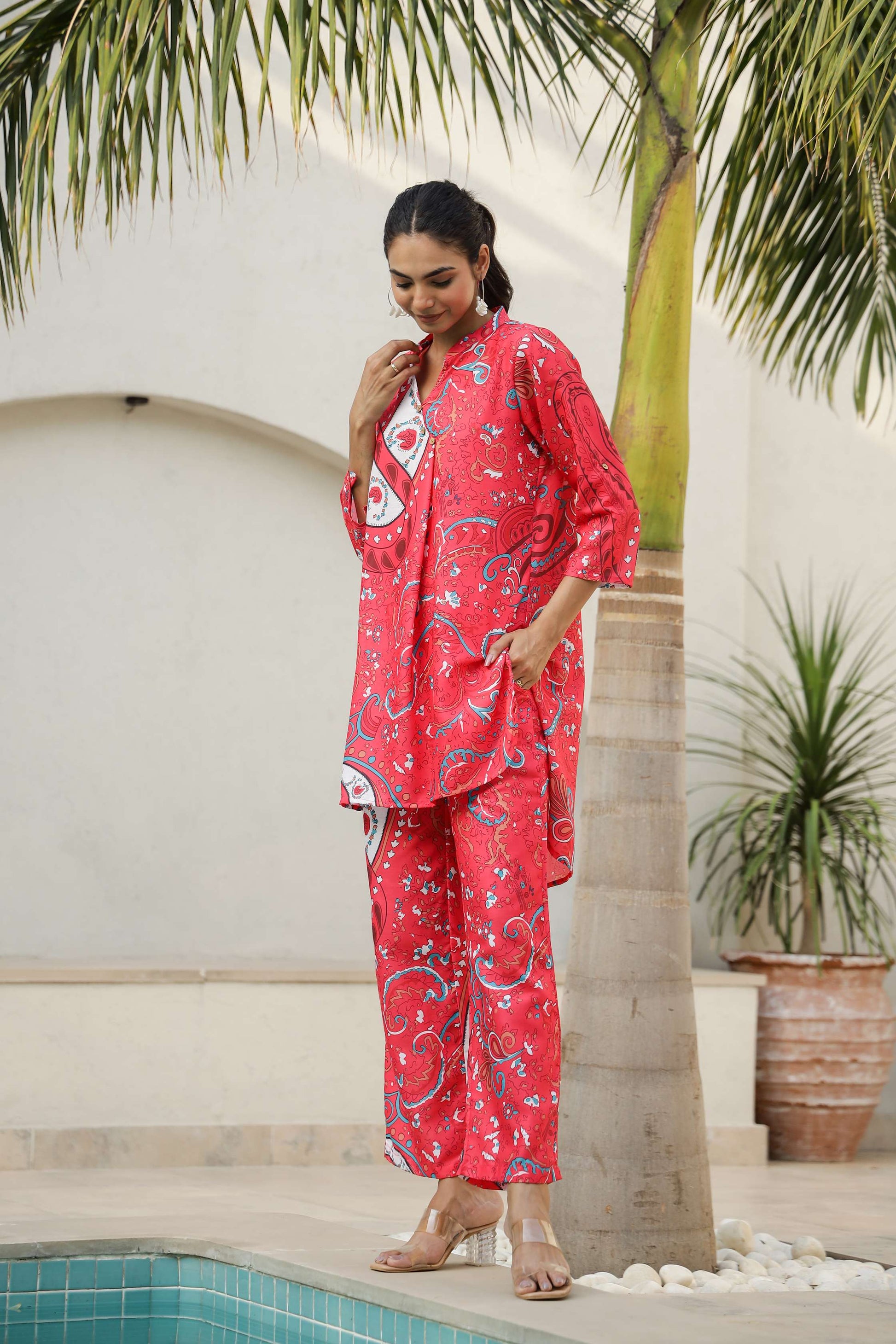 Vibrant Red Paisley Print Co-Ord Set for Women – Bold & Boho