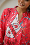 Turn heads wherever you go in our Red Paisley Print Co-Ord Set, a playful yet polished outfit that radiates confidence and charm. The energetic red base is beautifully contrasted with swirling blue, white, and paisley motifs for a boho-chic vibe.