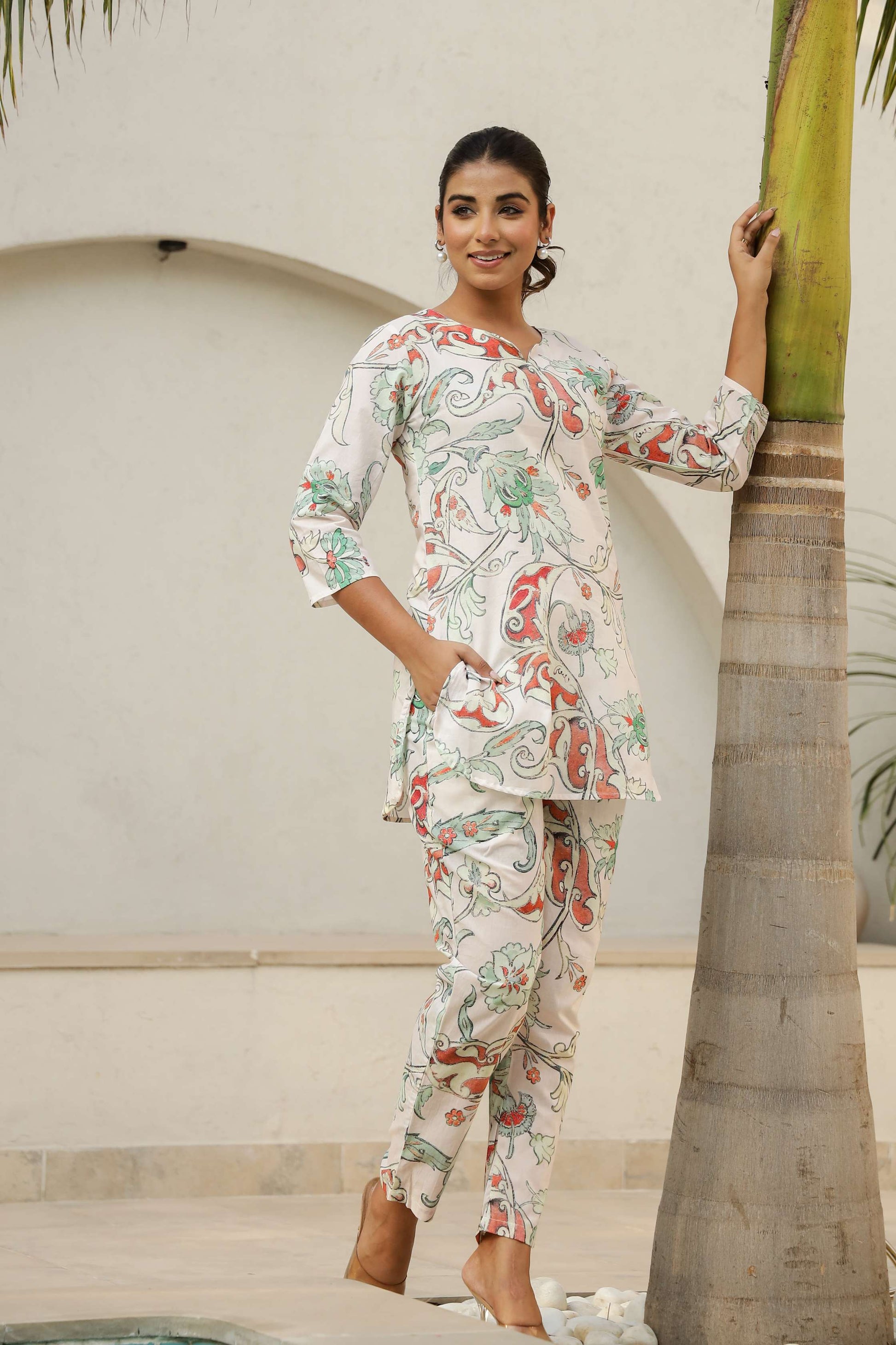 Off-White Floral Vine Print Co-Ord Set for Women – Elegant Everyday Style