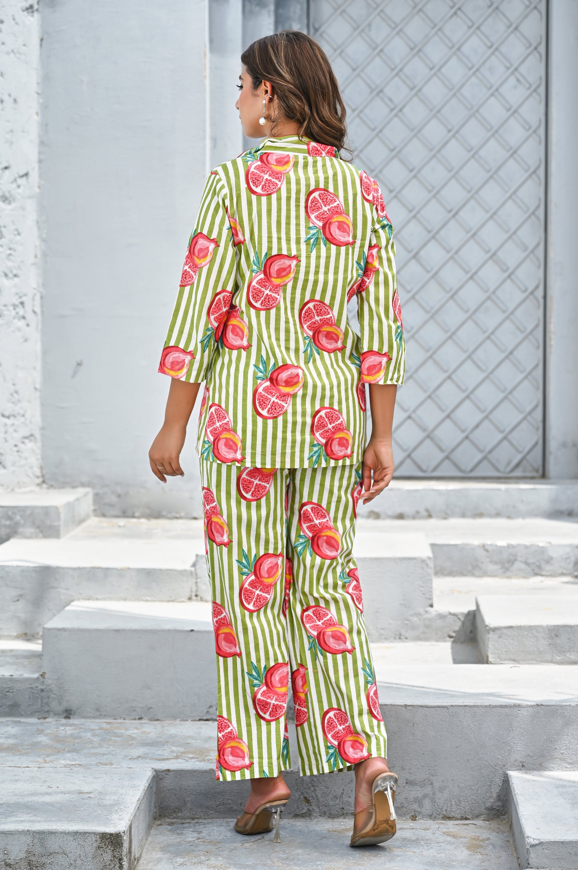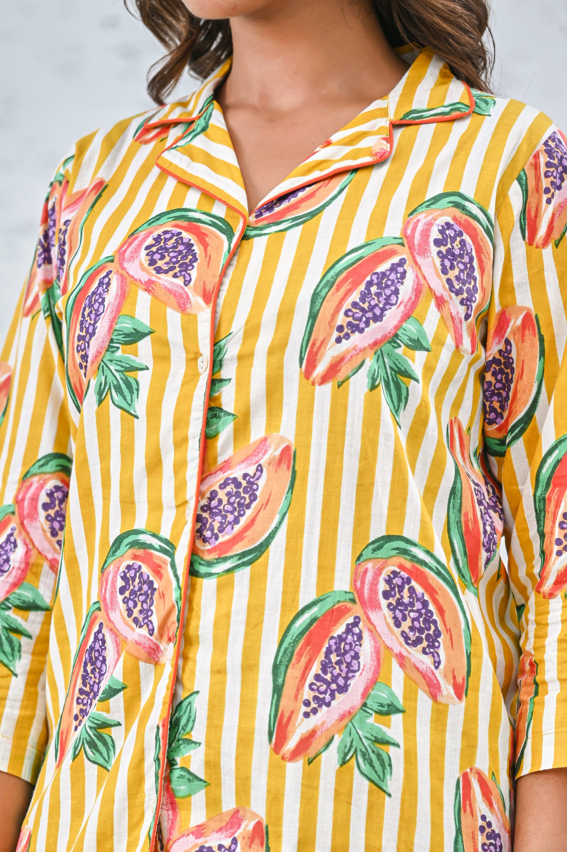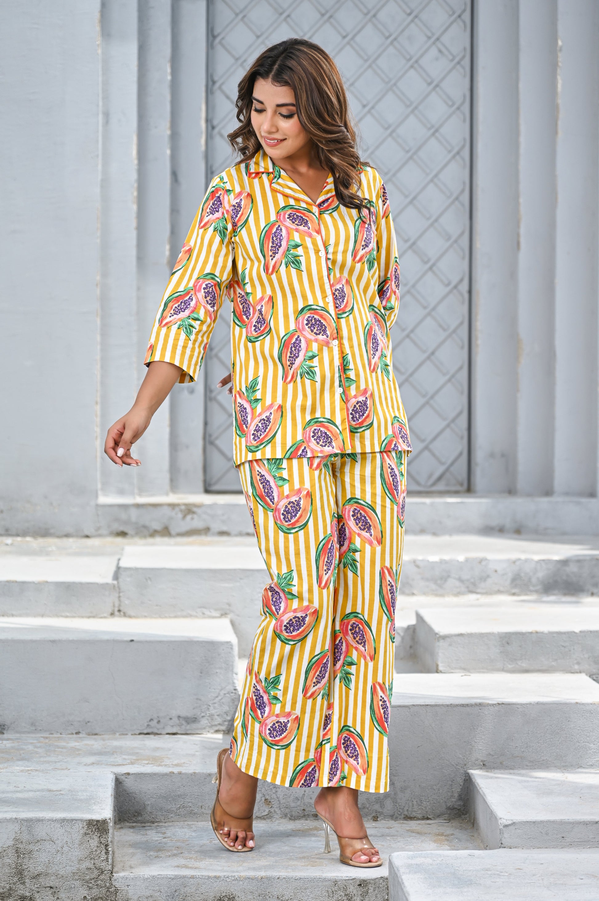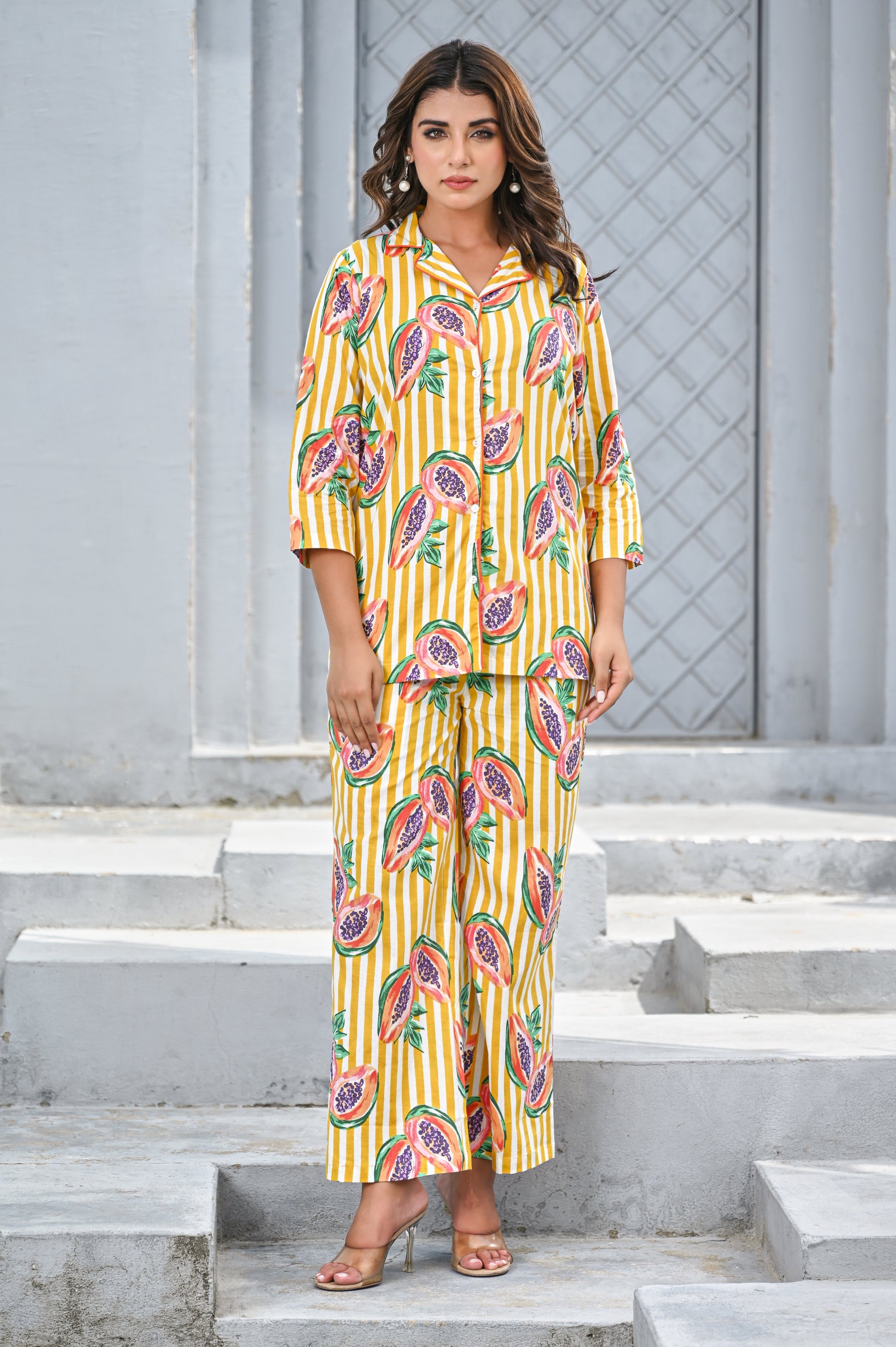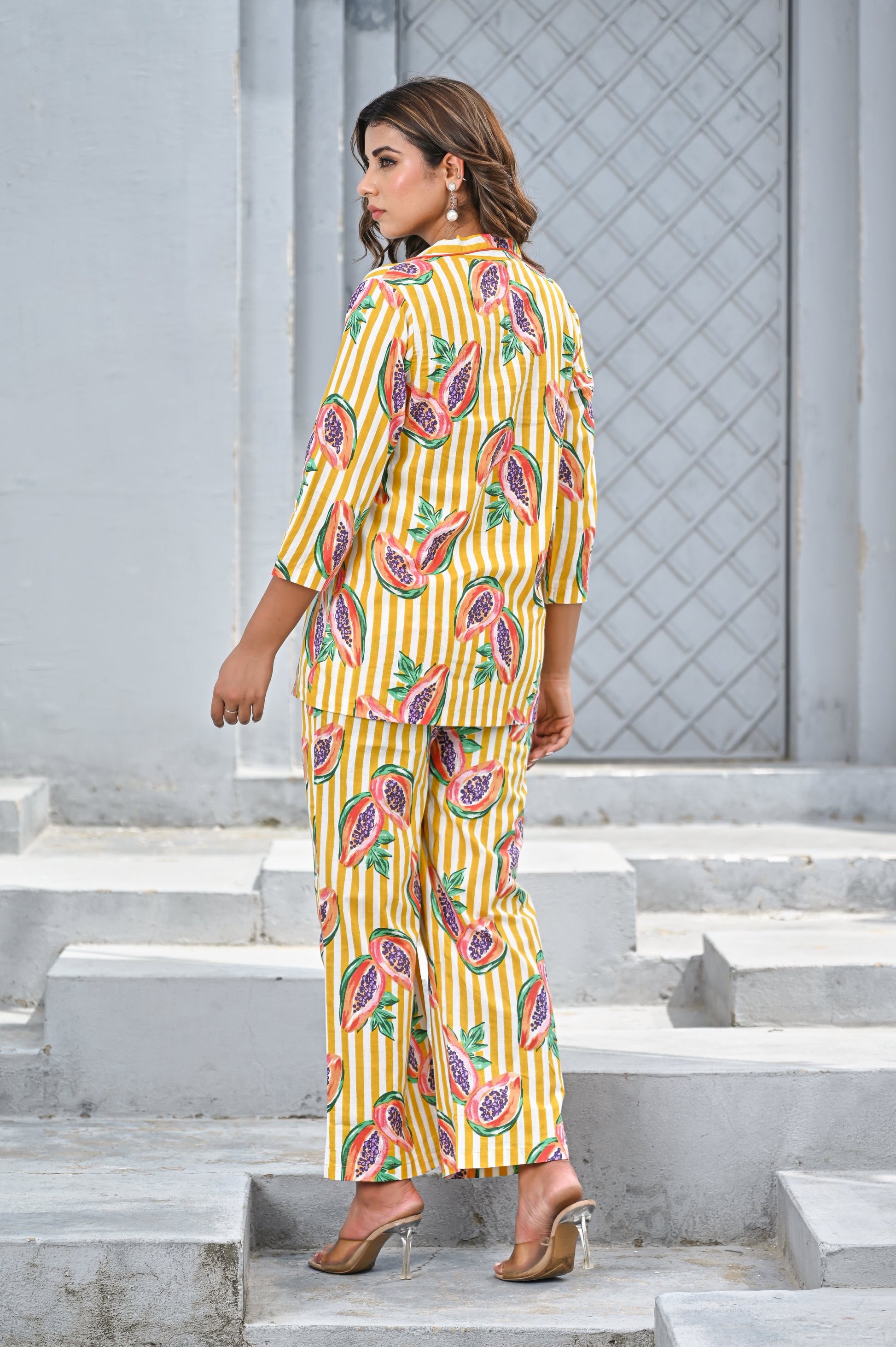 Women’s Yellow & White Stripe Papaya Print Co-ord Set