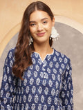 Indigo Charm Cotton Tunic Top – Navy Blue with White Handblock Print