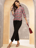Crafted from breathable pure cotton, it’s light, soft, and ideal for day-long wear. The V-split neckline and 3/4th sleeves offer a modern yet relaxed silhouette that suits all body shapes. Whether paired with black denims or neutral trousers, it’s your go-to for casual days, workwear, or coffee dates.