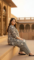 Step out in confidence and comfort with this plus-size Beige printed cotton co-ord set, thoughtfully designed for women who love style that moves with them. The soft cotton fabric keeps you cool all day, while the relaxed fit ensures a flattering and easy silhouette.