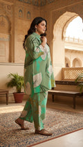 Step out in confidence and comfort with this plus-size green printed cotton co-ord set, thoughtfully designed for women who love style that moves with them. The soft cotton fabric keeps you cool all day, while the relaxed fit ensures a flattering and easy silhouette.