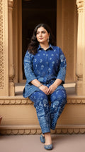 Plus Size Indigo Cotton Co-ord Set – Comfortable Party Wear for Women