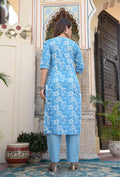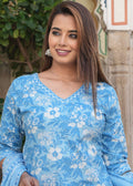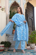 Bring timeless charm to your wardrobe with this sky blue cotton suit set. Designed with intricate floral prints and paired with a matching dupatta, it offers effortless style and comfort. Perfect for festive gatherings, casual outings, or everyday elegance.
