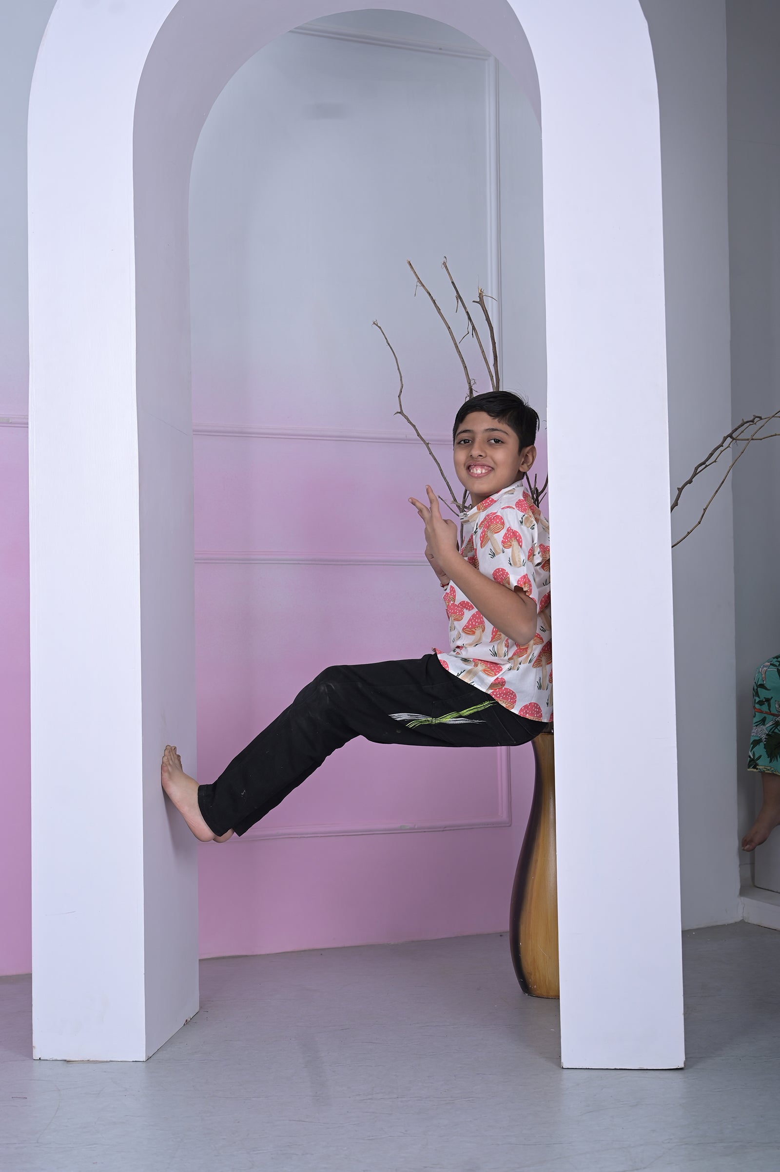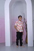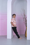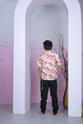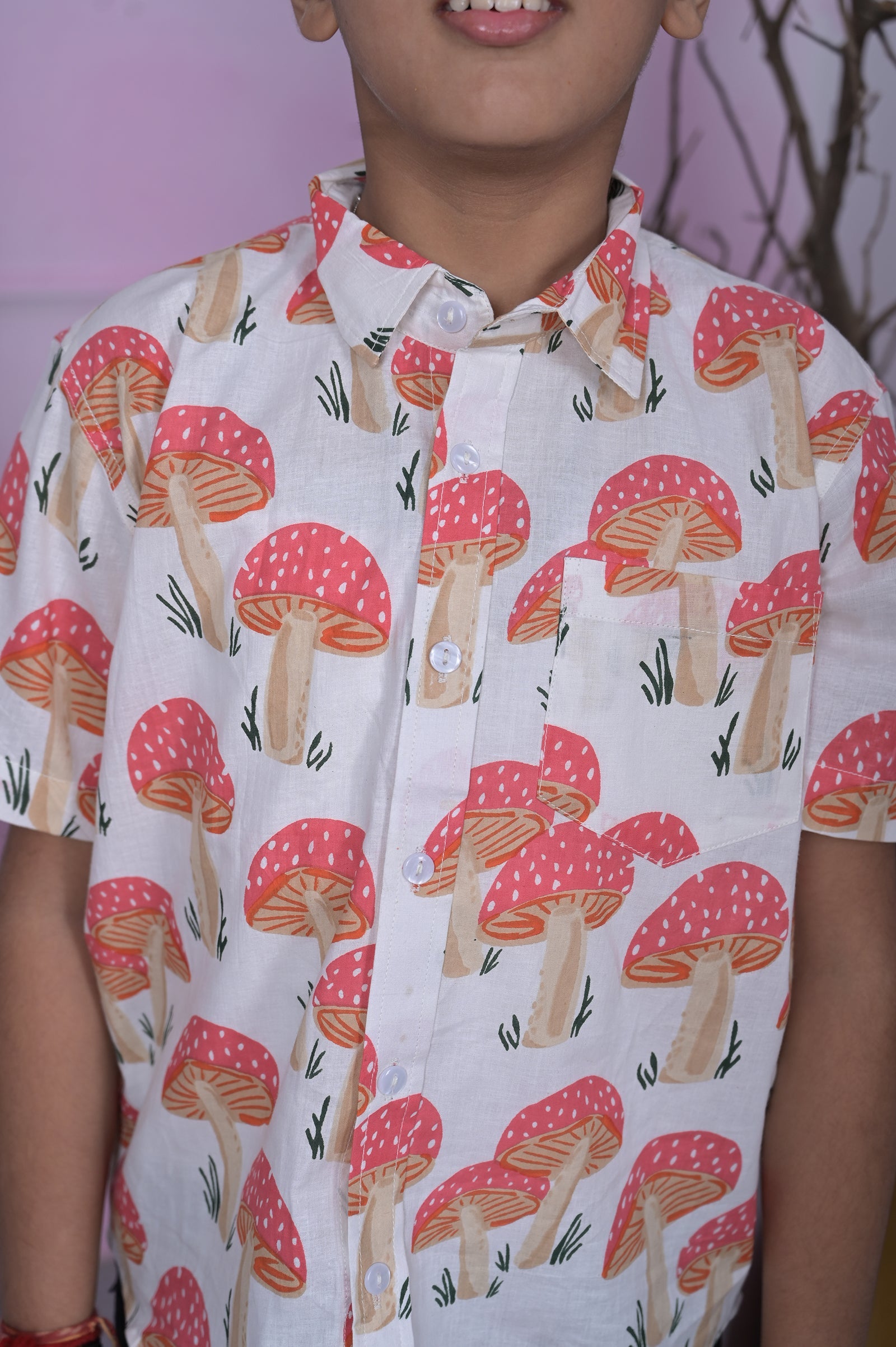 Bring whimsical charm to his wardrobe with this crisp white shirt dotted with red toadstool mushrooms. Light and airy, it’s perfect for weekend adventures or indoor fun.