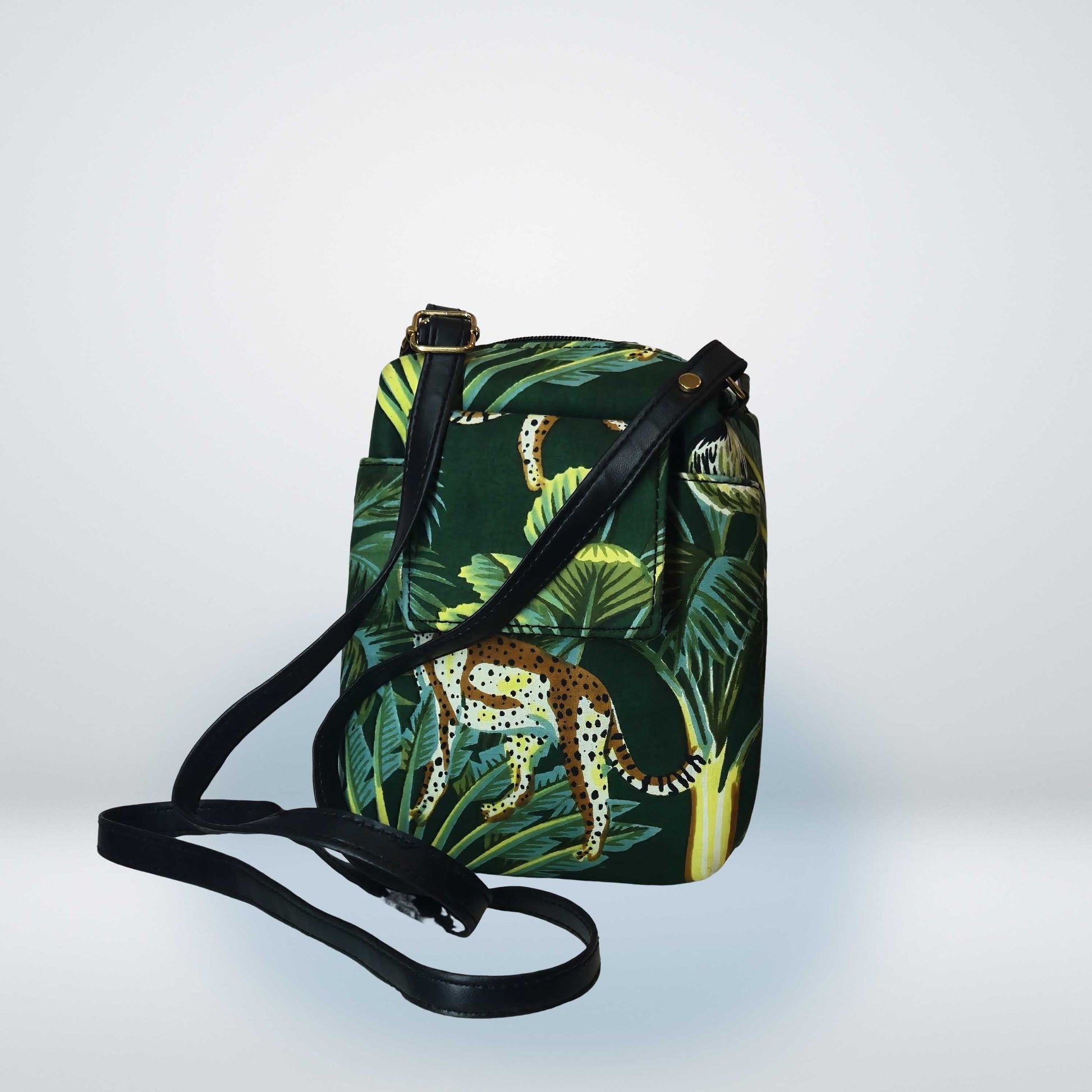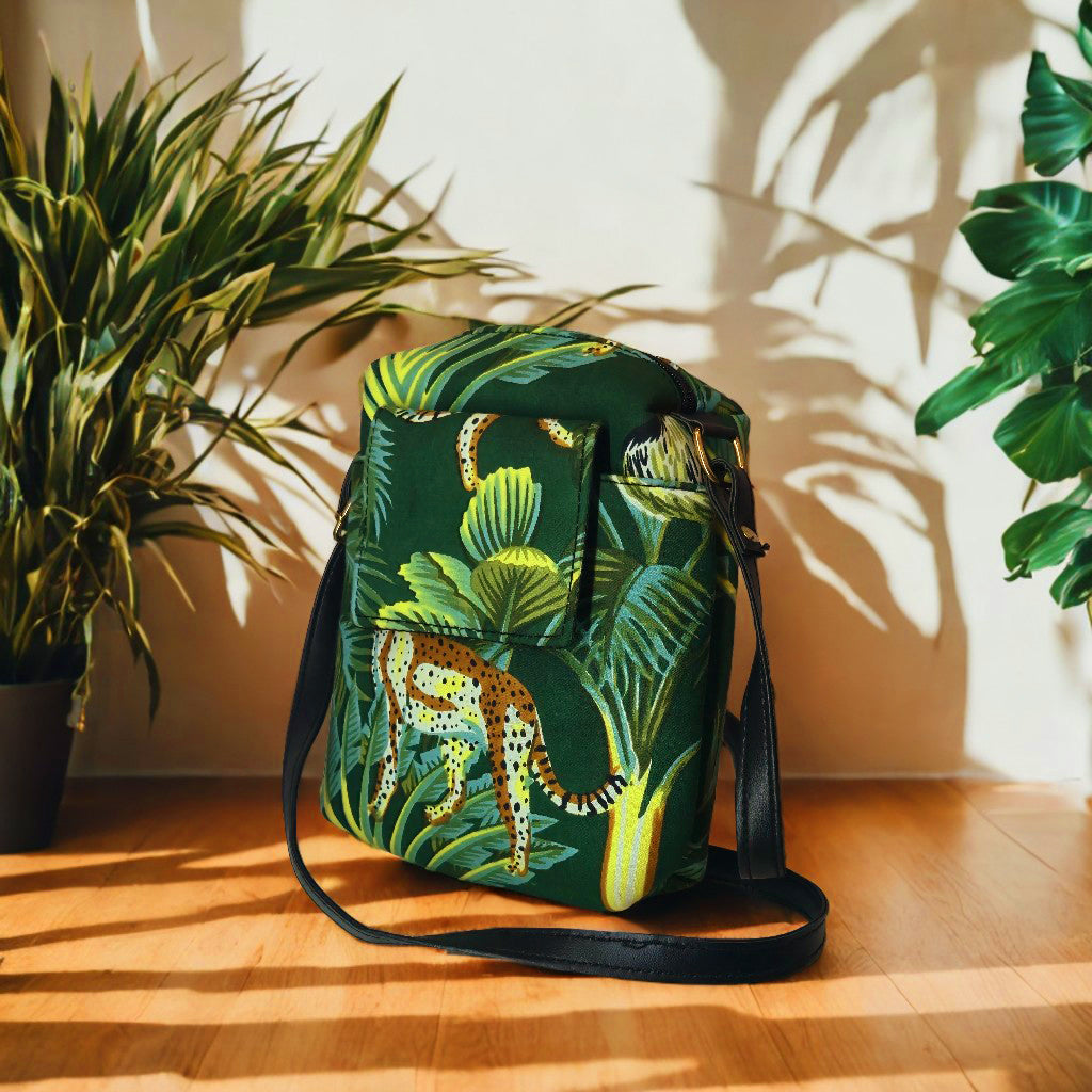 - Stylish Design: Featuring an eye-catching jungle print with a leaping leopard amidst lush greenery, this bag is both fashionable and unique.